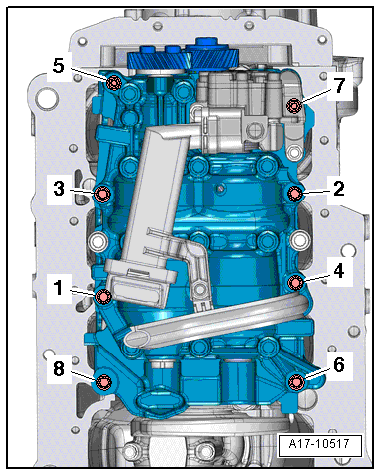 - Utáhněte šrouby 1 – 4, 6 a 8 momentem 20 Nm